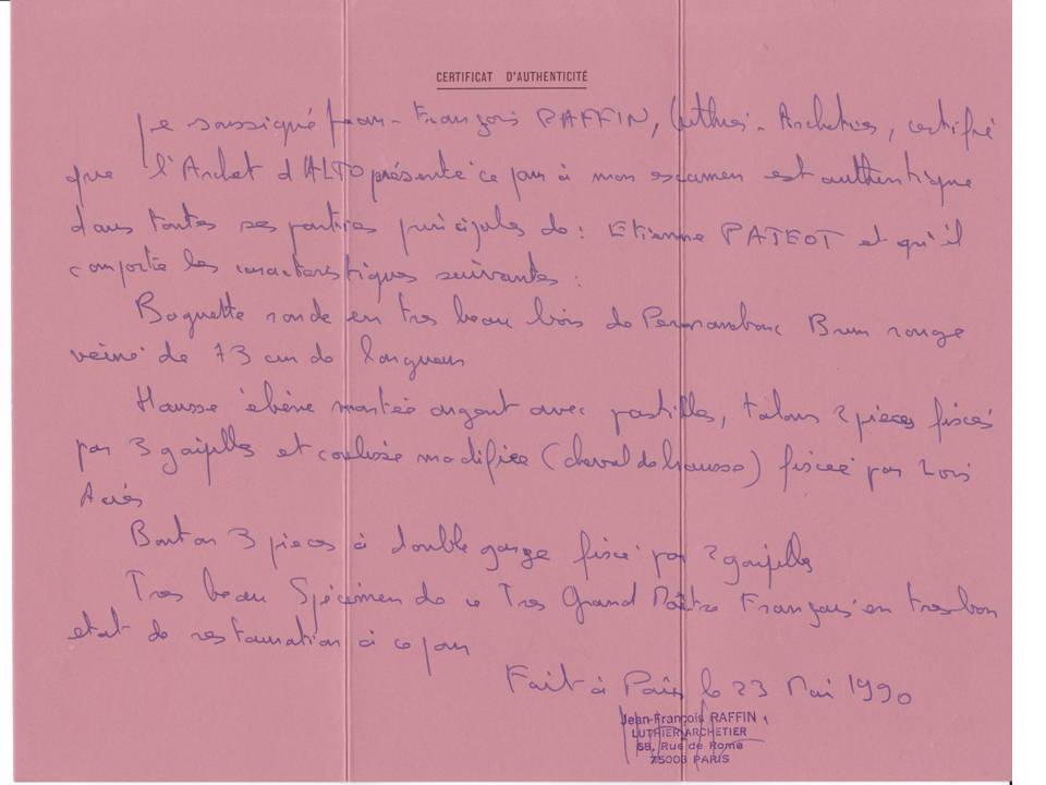 Violabogen: Étienne Pajeot, Mirecourt um 1830 Artikelnummer: A01905 Kategorie: < 100.000 € Schlagwörter: 1830, atelier alfredo clemente, Etienne Pajeot, Mirecourt, Violabogen Enthält 19% MwSt. zzgl. Versand Lieferzeit: bis zu 6 Werktage Beschreibung Beschreibung Violabogen Étienne Pajeot gebaut in Mirecourt um 1830 Zertifikat J.F. Raffin