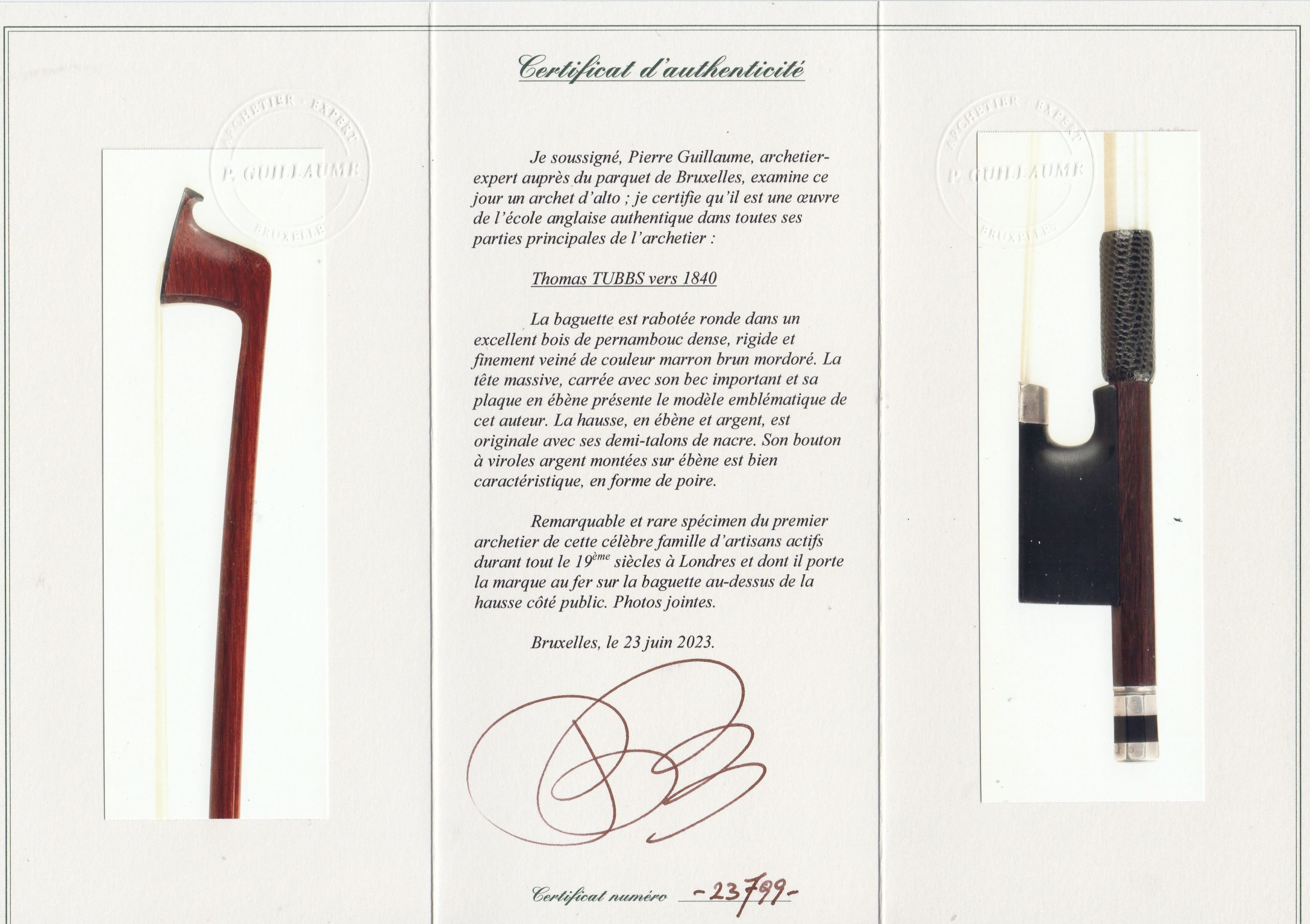 Violabogen: Thomas Tubbs, London um 1840 Artikelnummer: A01878 Kategorien: < 50.000 €, Bögen, Bratsche Schlagwörter: 1840, atelier alfredo clemente, Bogen, bratsche, instrument, London, streichinstrument, Thomas Tubbs, Violabogen Bei Interesse kontaktieren Sie uns bitte: +49 (0)221-5103922 info@clementestrings.com Zum Kontaktformular Enthält 19% MwSt. zzgl. Versand Lieferzeit: bis zu 6 Werktage Beschreibung Beschreibung Violabogen Thomas Tubbs gebaut in London um 1840 Zertifikat Pierre Guillaume